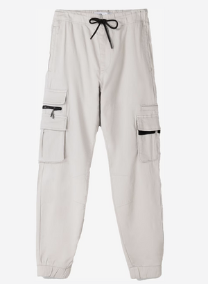 Solid color Cotton Drawstring belt Elastic hem Cargo pockets Zipper pocket Side pockets Solid color stripes Soft touch